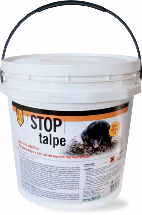 Mai Più STOP Talpe allontana molto efficacemente talpe e nutrie dagli orti. Contiene delle particolari sostanze, la cui liberazione nel terreno comporta un EFFETTO BARRIERA e di ANTAGONISMO nei confronti di animali terricoli (topi, talpe, grillotalpa, ecc.). E’ completamente privo di odori, fatto che lo rende particolarmente idoneo nell’utilizzo sui prati, nell’allestimento di parchi e giardini, nella preparazione del materiale da rinvaso.