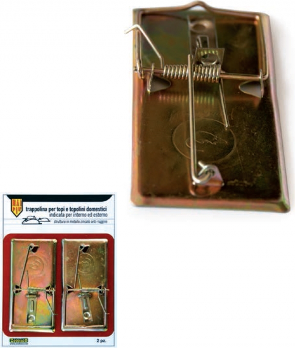 Trappola in metallo zincato anti-ruggine indicata per la cattura di topi e ratti (BIG) o topolini domestici (SMALL). Idelae quando non si vuole o non si possono utilizzre sostanze velenose.