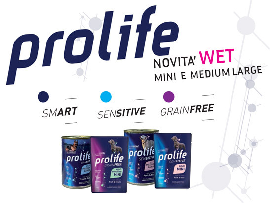 La gamma di alimenti umidi Prolife Dog si completa grazie all’inserimento di tre nuove referenze, nelle versioni Mini in bustine da 100 g e Medium/Large in barattoli da 400 g: la linea Smart wet si completa con Trout & Rice, con trota fresca e riso, la linea Sensitive, invece, con Pork & Rice, con maiale fresco e riso, infine, la linea Grain Free con Fish & Potato, senza cereali e glutine per rispettare le esigenze dei soggetti più sensibili a queste componenti. Alimenti con elevata inclusione di carne o pesce, per garantire un’appetibilità tutta naturale, e la preziosa integrazione Nutrigenomic System.