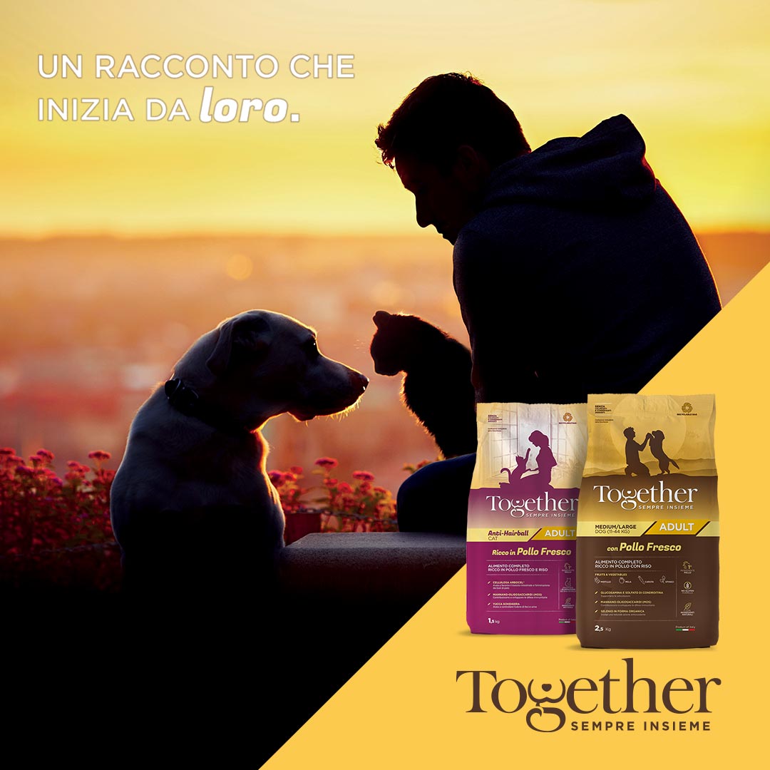 Dall’amore e dal rispetto per gli animali, Nasce Together sempre insieme, la nuova linea di alimenti dry pensata e prodotta da Zoodiaco per il benessere di cani e gatti, i nostri compagni di vita.