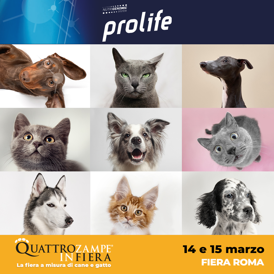 Prolife sarà tra i protagonisti di Quattrozampe in Fiera, l’evento dedicato agli amanti di cani e gatti, in programma il 14 e 15 marzo presso la Fiera di Roma.