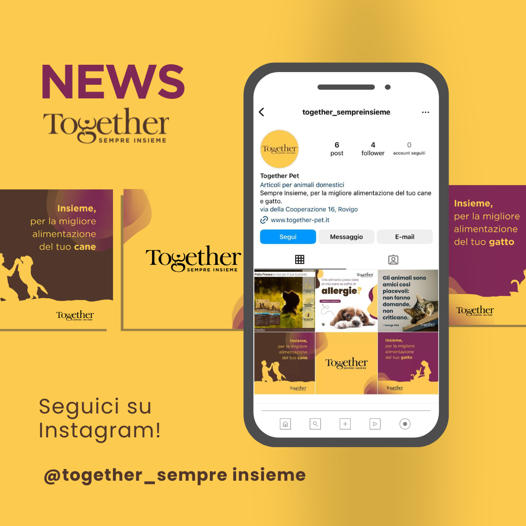 Con l’apertura del nuovo canale su Instagram, Together vuole condividere con la comunità online momenti speciali, consigli utili e storie coinvolgenti che mettono in evidenza il valore dei prodotti e il legame unico con i nostri animali domestici. Su questo nuovo canale (@together_sempreinsieme) sarà possibile continuare a coltivare questa connessione e a promuovere una vita felice e sana per gli amici a quattro zampe.